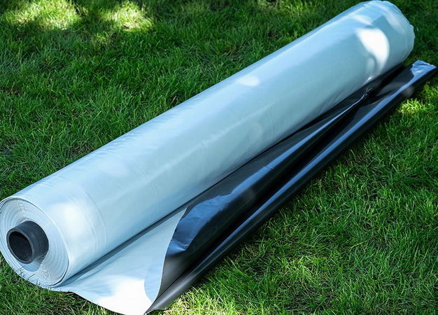 - Уложите рулон по центру траншеи, раскатайте его по всей длине. Оставьте концы, чтобы закрепить полиэтиленовое полотно. Дополнительная вакуумная плёнка не требуется.